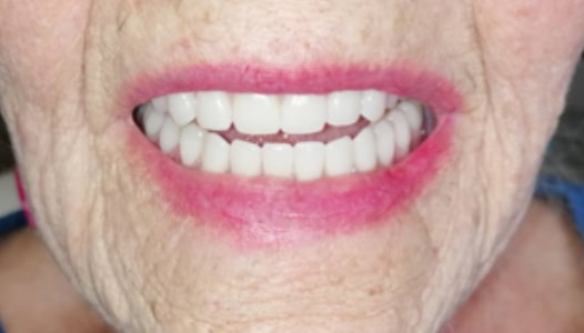 Patient above was undergoing bisphosphonate treatment for osteoporosis and unfortunately lost her teeth over her period of 4 years. She put off having her dentures made because of her constantly having bony outgrowths on her alveolar ridges. She was living off meal replacement drinks and only had a soft food diet. Her function, aesthetics and self confidence was compromised. She even said that she’d forgotten how to smile. She loves her new dentures.